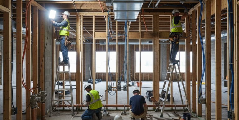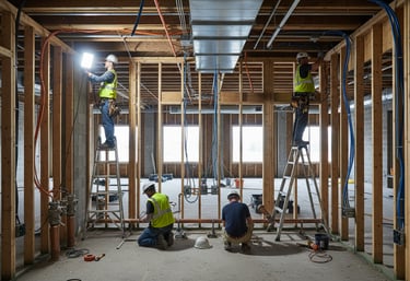 ننفّذ جميع أعمال الكهرباء بدءًا من التمديدات الداخلية والخارجية، مرورًا بلوحات التوزيع وأنظمة الإضاءة والتحكم، وصولاً إلى أنظمة الطاقة البديلة، مع التركيز على الأمان والكفاءة التشغيلية.